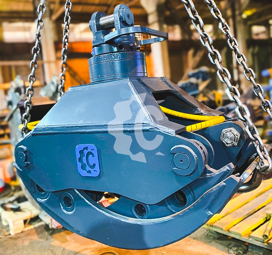 - На грейфер устанавливается ротатор Thumm, немецкое качество которого обеспечивает надежную эксплуатацию навесного оборудования;